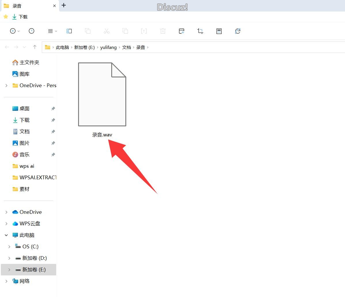 接下来在打开的文件夹中就可以看到刚刚录制好的音频文件。