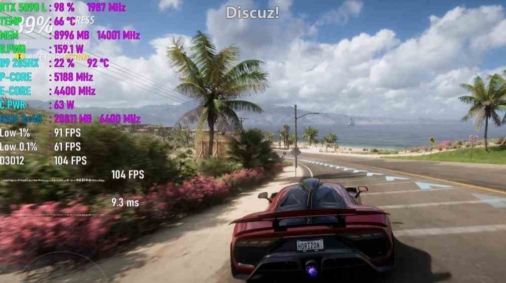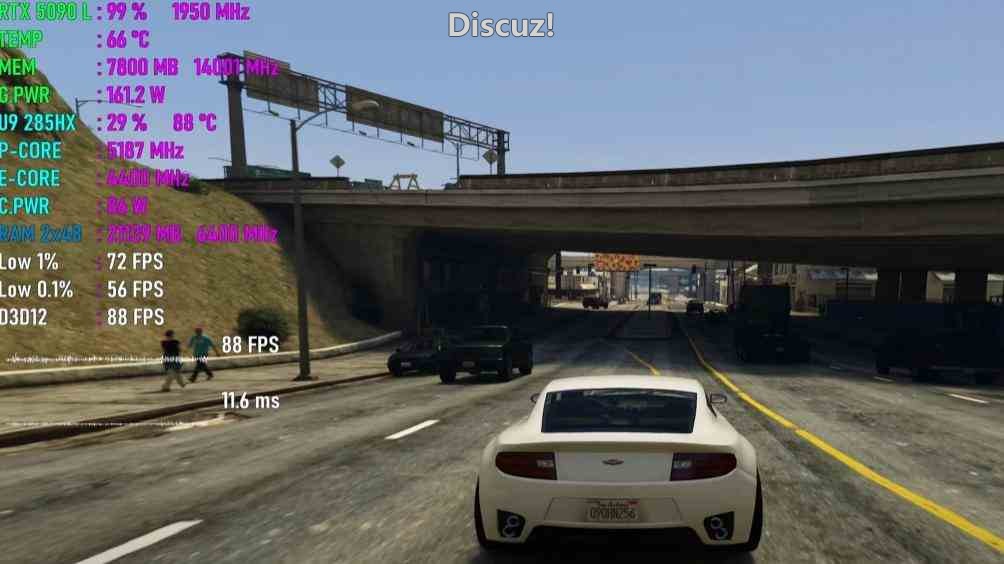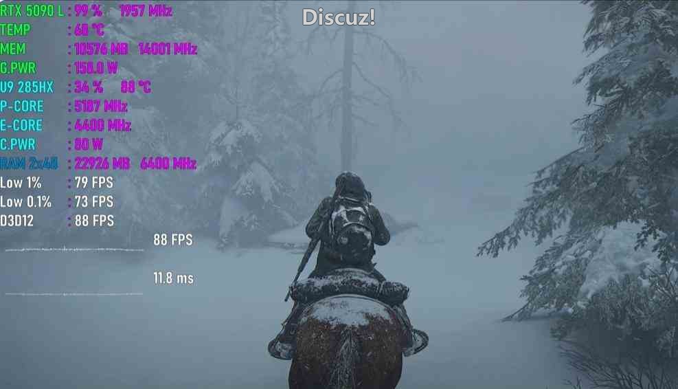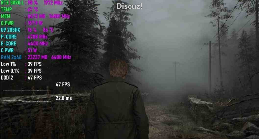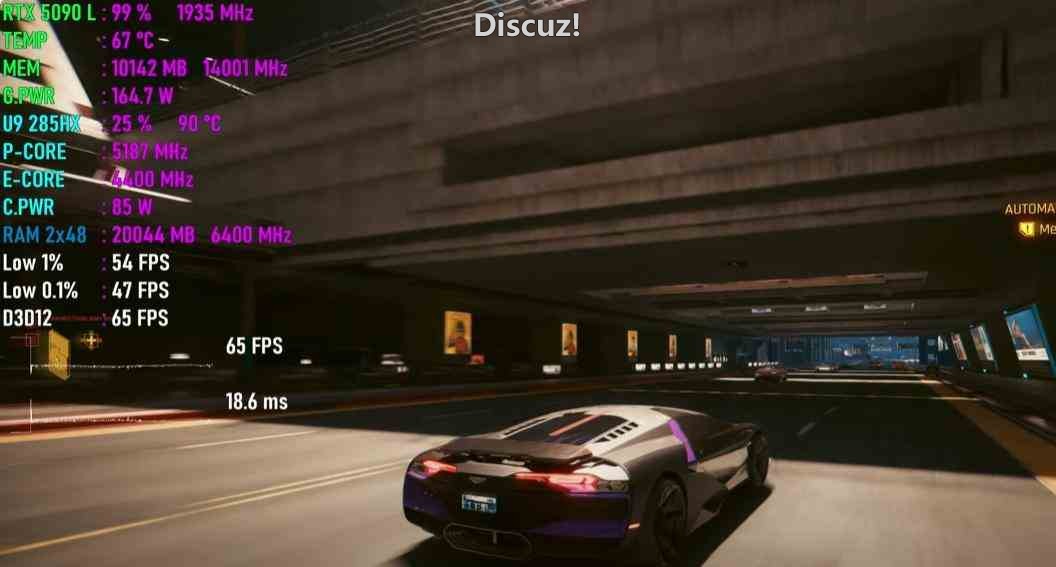前段时间,小编分享了部分GeForce RTX 5090的游戏性能测试,不过都是桌面版。但是有一部分高端游戏玩家对便携性要求很高,不适合使用台式机,因此他们更关注GeForce RTX 5090移动版的性能。 本文将分享Core Ultra 9 285HX+GeForce RTX 5090 24GB移动版这一梦幻顶配笔记本电脑的游戏性能。供感兴趣的朋友参考。 参数介绍为方便读者深入理解,下面分别介绍一下GeForce RTX 5090移动版和桌面版的参数: GeForce RTX 5090移动版发布于2025年3月27日,采用GB203-300-A1 GPU,台积电5纳米工艺,拥有10496个CUDA内核,112个光栅单元,328个纹理单元,82个多单元流处理器,张量内核为328个,光线追踪内核为82个,L2缓存为64MB。 标准运行频率为990 MHz,最高运行频率为1515 MHz,搭载24GB GDDR7显存,显存位宽为256 bit,显存速度为28Gbps,显存带宽为896.0 GB/s,FP32浮点性能为31.80 TFLOPS,功耗为95W。 GeForce RTX 5090发布于2025年1月6日,采用GB202-300-A1 GPU,台积电5纳米工艺,拥有21760个CUDA内核,176个光栅单元,680个纹理单元,170个多单元流处理器,张量内核为680个,光线追踪内核为172个,L2缓存为96MB。 标准运行频率为2017 MHz,最高运行频率为2407 MHz,搭载32GB GDDR7显存,显存位宽为512 bit,显存速度为28Gbps,显存带宽为1.8TB/s,FP32浮点性能为104.8 TFLOPS,功耗为575W,建议零售价为1999美元。 测试平台配置主要配置如下: 处理器为Core Ultra 9 285HX,内存为96GB DDR5 6400MHz,显卡为GeForce RTX 5090 24GB移动版,操作系统为Windows 11。 游戏测试以下将分别测试七款游戏,均采用2440P画质模式,DLSS设置为质量模式。 第一款游戏是《战神》。 平均帧速为78 FPS,最低瞬时帧速为64 FPS,帧时间为13.1ms,CPU使用率为18%,功耗为58W,温度为90度,内存使用量为20.5GB,GPU使用率为100%,显存使用量为7.7GB,功耗为169W,温度为69度。 在这款游戏中,CPU使用率不到20%,非常轻松,内存使用量在20GB至21GB之间,GPU彻底跑满,显存使用量在7GB至8GB之间。 在平均帧速方面,可以达到70 FPS以上,最低瞬时帧速在60 FPS以上,帧时间在13ms左右。 第二款游戏是《荒野大镖客救赎2》。 平均帧速为62 FPS,最低瞬时帧速为50 FPS,帧时间为16.2ms,CPU使用率为24%,功耗为76W,温度为95度,内存使用量为24.2GB,GPU使用率为96%,显存使用量为5.6GB,功耗为149W,温度为63度。 在这款游戏中,CPU使用率在25%左右,将近四分之一,内存使用量在24GB出头,GPU接近满载,显存使用量在5GB至6GB之间。 在平均帧速方面,可以达到60 FPS以上,最低瞬时帧速在50 FPS左右,帧时间在16ms左右。 第三款游戏是《赛博朋克2077》。 平均帧速为65 FPS,最低瞬时帧速为54 FPS,帧时间为18.6ms,CPU使用率为25%,功耗为85W,温度为90度,内存使用量为20.0GB,GPU使用率为99%,显存使用量为10.1GB,功耗为165W,温度为67度。 在这款游戏中,CPU使用率在25%左右,将近四分之一,内存使用量在20GB左右,GPU基本满载,显存使用量在10GB左右。 在平均帧速方面,可以达到60 FPS以上,最低瞬时帧速在50 FPS以上,帧时间在18ms左右。 第四款游戏是《极限竞速地平线5》。 平均帧速为104 FPS,最低瞬时帧速为91 FPS,帧时间为9.3ms,CPU使用率为22%,功耗为63W,温度为92度,内存使用量为20.8GB,GPU使用率为98%,显存使用量为9.0GB,功耗为159W,温度为66度。 在这款游戏中,CPU使用率在22%左右,内存使用量在20GB至21GB之间,GPU基本满载,显存使用量在9GB左右。 在平均帧速方面,可以达到100 FPS以上,最低瞬时帧速在90 FPS左右,帧时间在10ms以内。 第五款游戏是《GTA 5》。 平均帧速为88 FPS,最低瞬时帧速为72 FPS,帧时间为11.6ms,CPU使用率为29%,功耗为86W,温度为88度,内存使用量为21.1GB,GPU使用率为99%,显存使用量为7.8GB,功耗为161W,温度为66度。 在这款游戏中,CPU使用率在30%左右,内存使用量在21GB左右,GPU基本满载,显存使用量在7GB至8GB之间。 在平均帧速方面,可以达到80 FPS以上,最低瞬时帧速在70 FPS以上,帧时间在11ms左右。 第六款游戏是《寂静岭2》。 平均帧速为47 FPS,最低瞬时帧速为39 FPS,帧时间为22.0ms,CPU使用率为16%,功耗为51W,温度为86度,内存使用量为23.2GB,GPU使用率为98%,显存使用量为8.5GB,功耗为158W,温度为67度。 在这款游戏中,CPU使用率在16%左右,不足20%,内存使用量在23GB出头,GPU接近满载,显存使用量在8GB至9GB之间。 在平均帧速方面,可以达到40 FPS以上,最低瞬时帧速在30 FPS以上,帧时间在22ms左右,表现稍差。 第七款游戏是《最后生还者第二部》。 平均帧速为88 FPS,最低瞬时帧速为79 FPS,帧时间为11.8ms,CPU使用率为34%,功耗为80W,温度为88度,内存使用量为22.9GB,GPU使用率为99%,显存使用量为10.6GB,功耗为158W,温度为68度。 在这款游戏中,CPU使用率在34%左右,内存使用量在23GB左右,GPU基本满载,显存使用量在10GB至11GB之间。 在平均帧速方面,可以达到80 FPS以上,最低瞬时帧速在70 FPS以上,帧时间在12ms左右。 测试结论这就是Core Ultra 9 285HX+GeForce RTX 5090 24GB这套顶配笔记本电脑的实际游戏性能表现。总体来说,和GeForce RTX 5090 32GB桌面版相比,差距巨大,看惯了GeForce RTX 5090 32GB桌面版的表现,很难接受GeForce RTX 5090移动版的表现。 但是,受制于多种因素,指望GeForce RTX 5090移动版和GeForce RTX 5090桌面版拥有相同的性能肯定是不现实的。在这种情况下,如果确定只能使用笔记本电脑,不方便使用台式机的话,那么这套配置的表现就是现阶段的天花板。 |