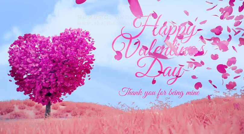 AE模板 浪漫情人节粉红心形树花瓣飘舞开场片头 Valentines Tree Wishes Reveal