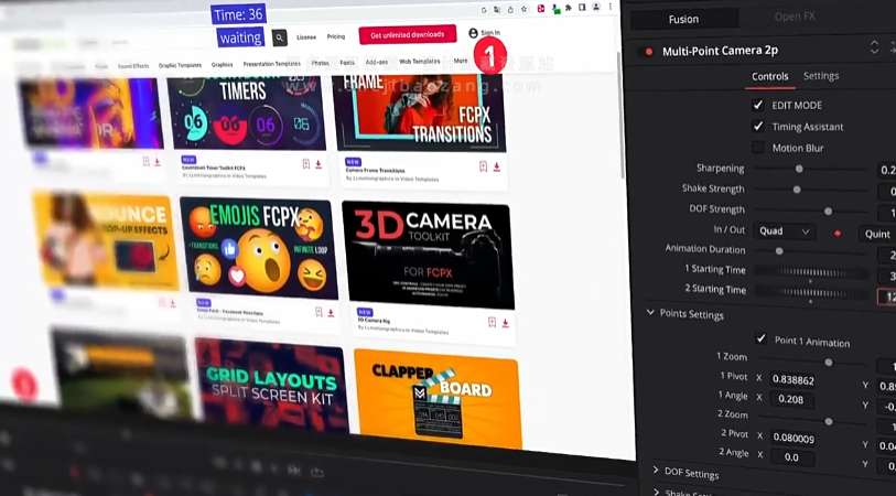 达芬奇特效库主要特性1. 多点控制使用Multipoint Action Camera,您可以在图像或视频中选择最多五个点,通过这些点来控制相机路径。这种灵活性让您能够精准地定位和调整动态相机运动,创造出独特而引人入胜的视觉效果。 2. 自动拍摄控制通过选择1到5个点,该预设模板会自动创建相应的动画路径,使得动态相机运动变得自动化且高效。这一功能的加入大大简化了复杂动画的制作流程,使其更加用户友好。 3. 自定义动画曲线和速度Multipoint Action Camera支持用户自定义动画曲线和速度,使您能够根据具体需求调整动画的流畅度和表现力。这种灵活性保证了您对最终效果的完全掌控。 4. 适用场景广泛适用于任何视频教程、应用程序或服务推广视频、UI界面或网站演示以及摄影作品集或广播。无论您是在制作教学视频,还是在展示产品功能,Multipoint Action Camera都能为您的作品增色不少。 使用说明- 导入Multipoint Action Camera到达芬奇Resolve 18或更高版本。