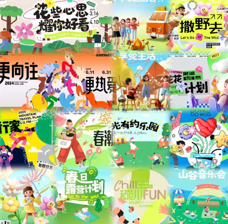 - 实践操作:尝试将这些模版应用到实际项目中,如春季出游活动海报、露营促销海报等,探索其在不同场景中的应用效果。