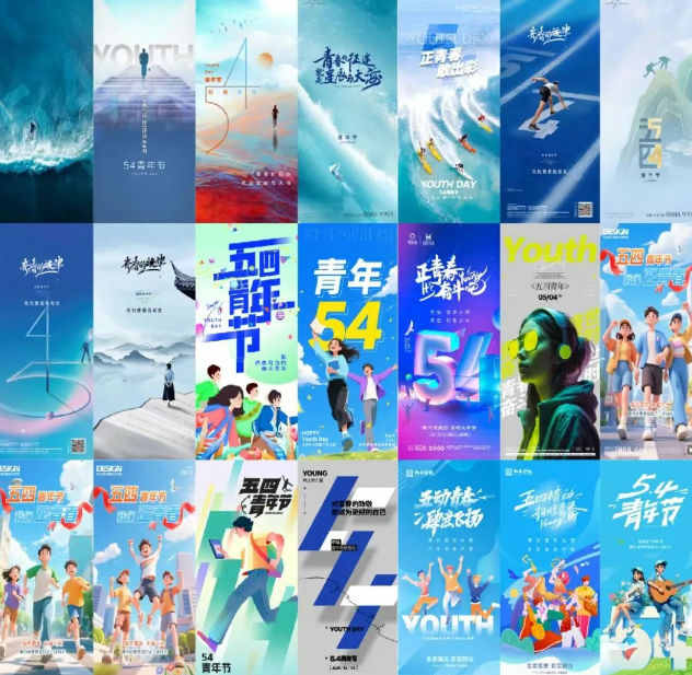 适用场景- 青年节宣传:为五四青年节设计的宣传海报、banner和展板,提升活动的视觉吸引力。