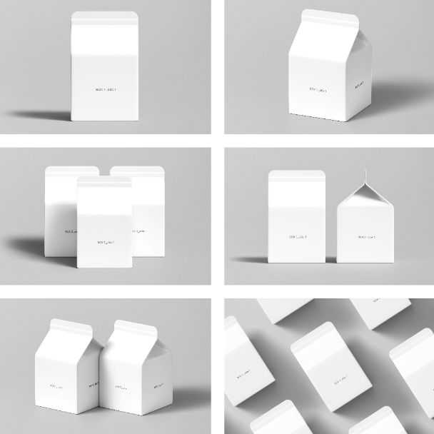 牛奶饮料纸盒包装样机刀模图PS样机模板设计素材智能贴图6款