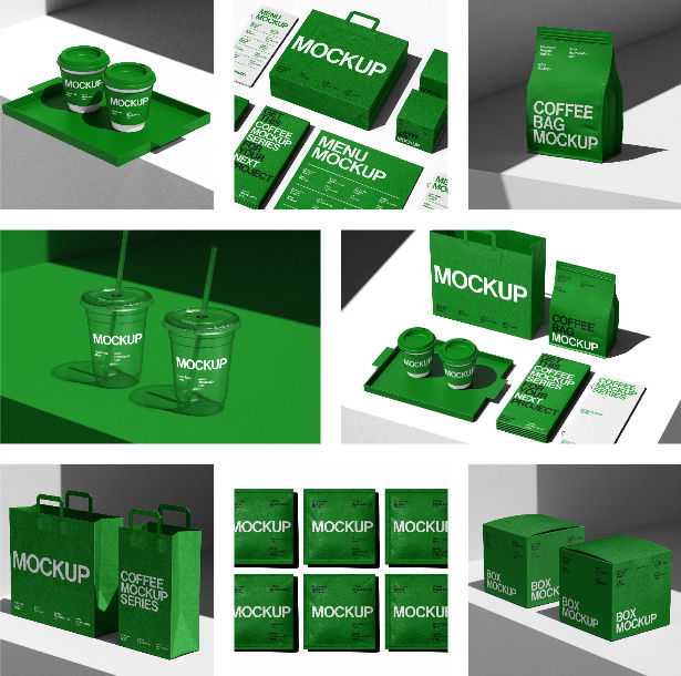咖啡奶茶品牌VI应用外卖纸袋纸杯菜单拎袋PS样机包装展示效果图模版设计素材14款