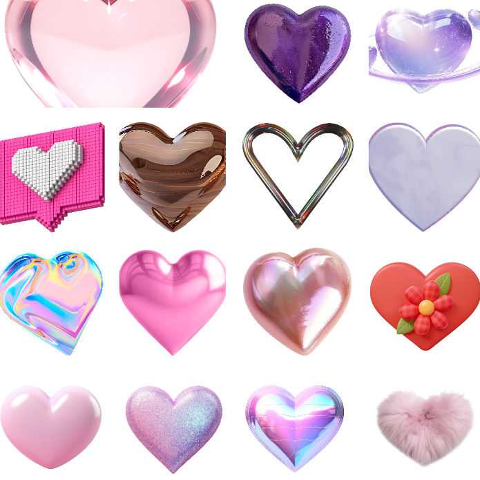 这套素材专为千禧Y2K与Ins潮流视觉打造,包含160款高清PNG免抠爱心贴纸。采用3D立体水晶+镭射金属质感,高饱和渐变色彩,瞬间提升画面未来感与甜酷氛围,适用于海报、短视频、社媒封面、电商主图等多种设计场景。