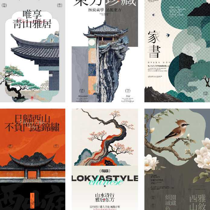 中式古风古韵已经建筑中国风创意潮流PS模版海报设计素材59款