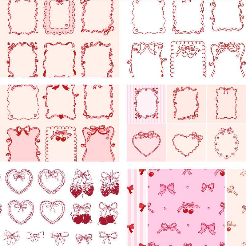 • 150款精选元素:蝴蝶结、爱心、樱桃、丝带等ins爆款图形一次打包