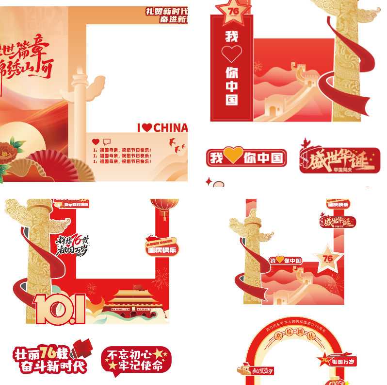 • 国庆主题元素:天安门、红旗、烟花、灯笼、2025数字,氛围一步到位