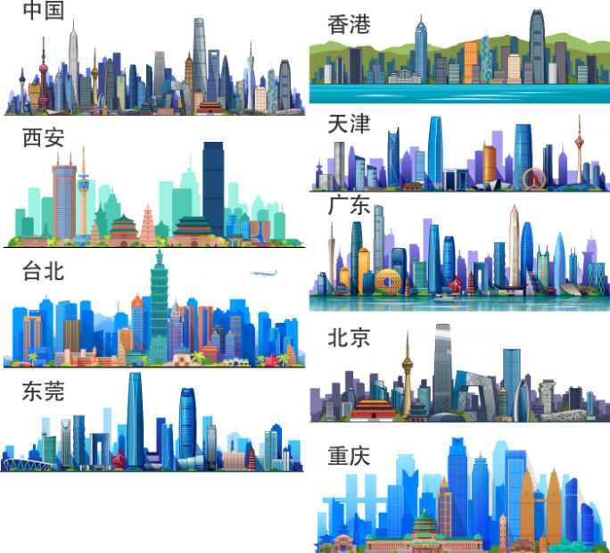 素材介绍:本作品内容为城市建筑景点地标AI矢量西安重庆天津场景插画免扣元素设计素材模板, , 大小0.021 GB; 欢迎使用。