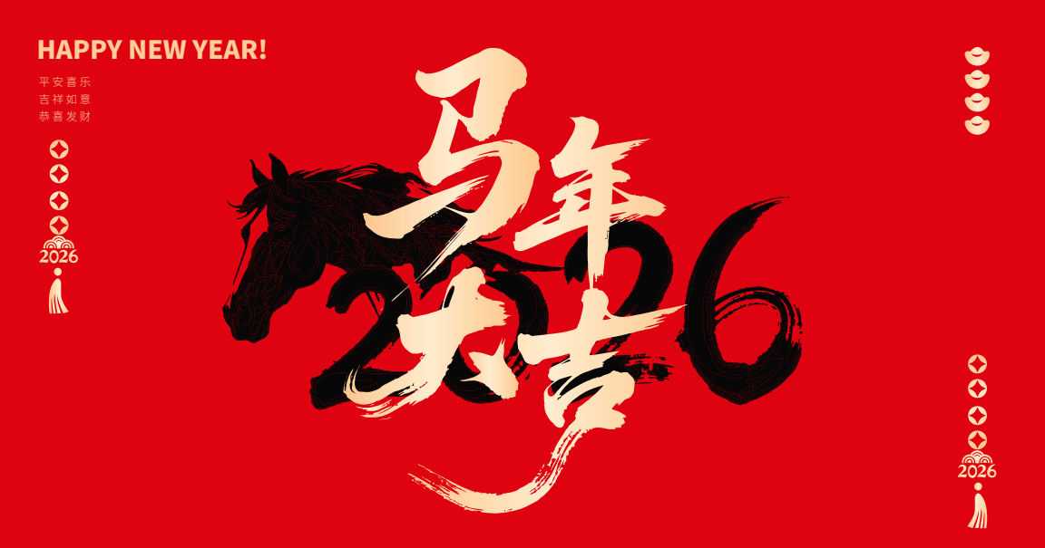 • 新中式插画:祥云、瑞马、牡丹、鎏金,节庆氛围浓厚