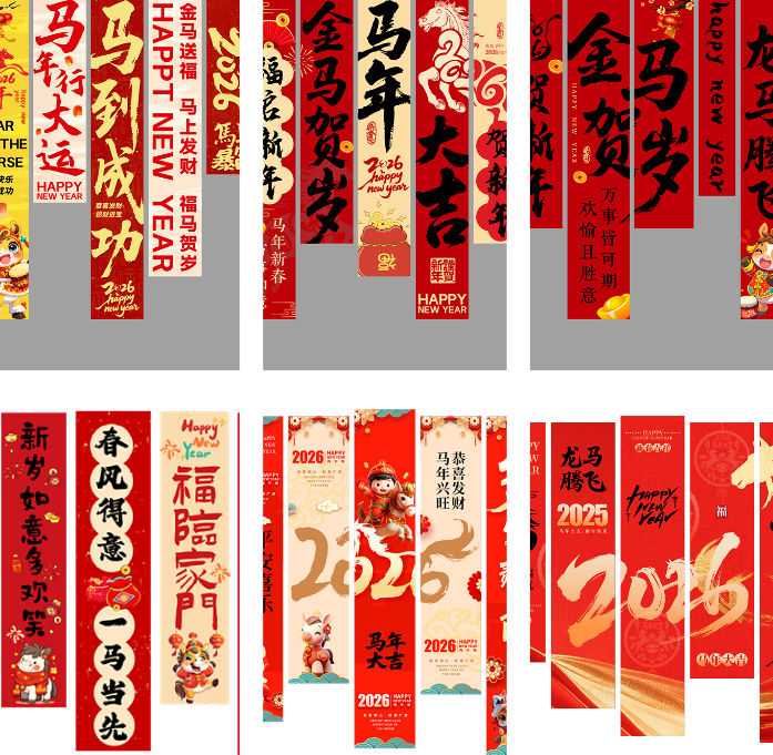 素材介绍:本作品内容为2026元旦马年挂布新年春节喜庆长吊幔背景布电子PS设计素材CDR模板21款, , 大小2.41 GB; 欢迎使用。