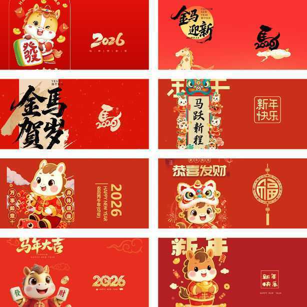 2026马年马到功成新年春节红包封面福袋PS模板AI矢量设计素材背景35款