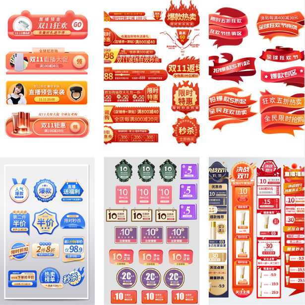 双十一11电商标签优惠券双十二主题活动标签元素PS海报模版AI矢量设计素材122款