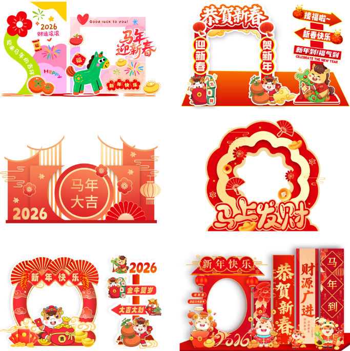 素材介绍:本作品内容为2026元旦马年活动美陈红色堆头背景板拍照框物料PS模板设计素材29套, , 大小0.85 GB; 欢迎使用。