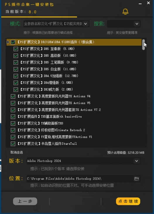 024年全新版本的PS插件合集包8.0版,一键安装,让你在Photoshop中的创作如虎添翼,轻松实现各种高级效果。
